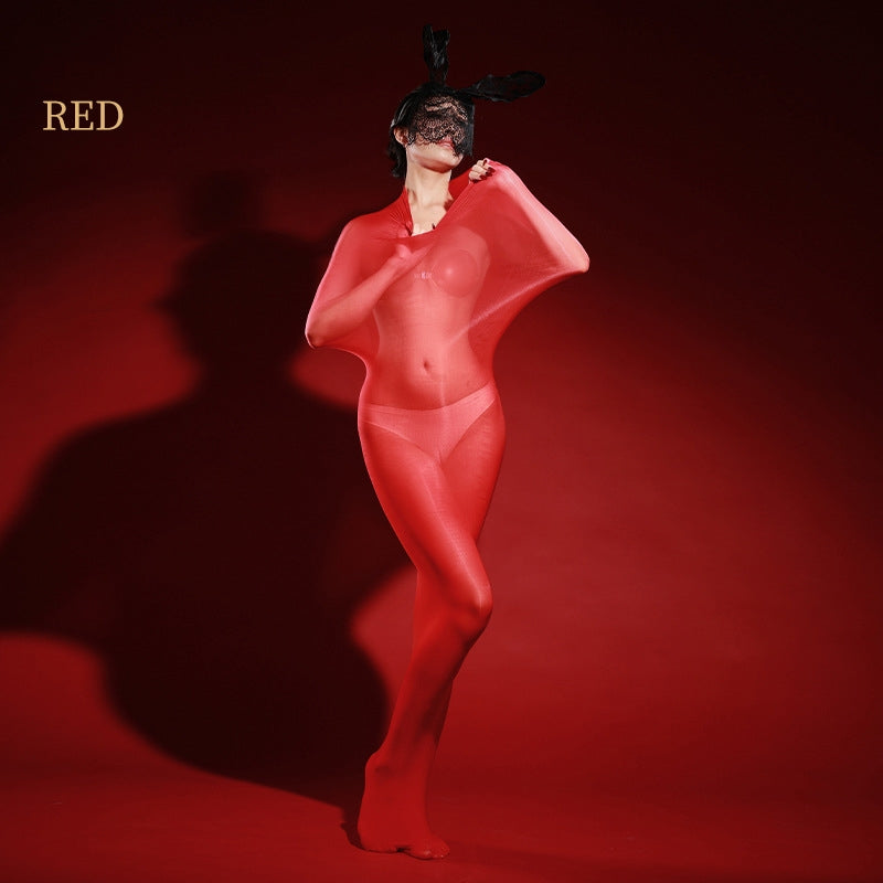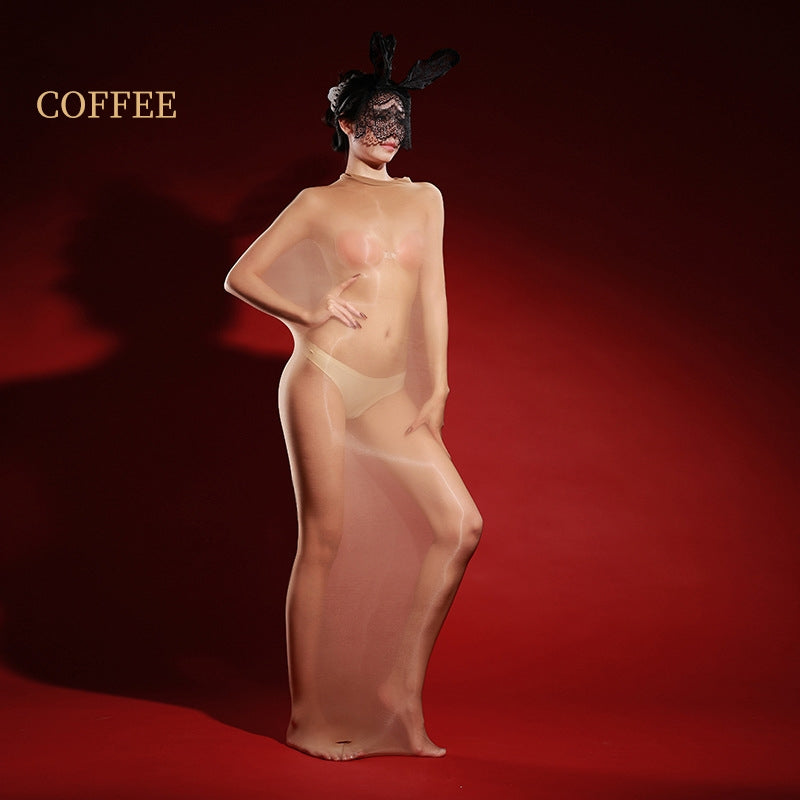 Envelop yourself in liquid shadow with this seamless glossy bodysuit where ultra-sheer oil-shine nylon clings like molten silk sculpting every curve in hypnotic transparency. Second-skin fit turns every movement into slow invitation perfect for masked play crimson-lit rooms or silk-sheet tangles.