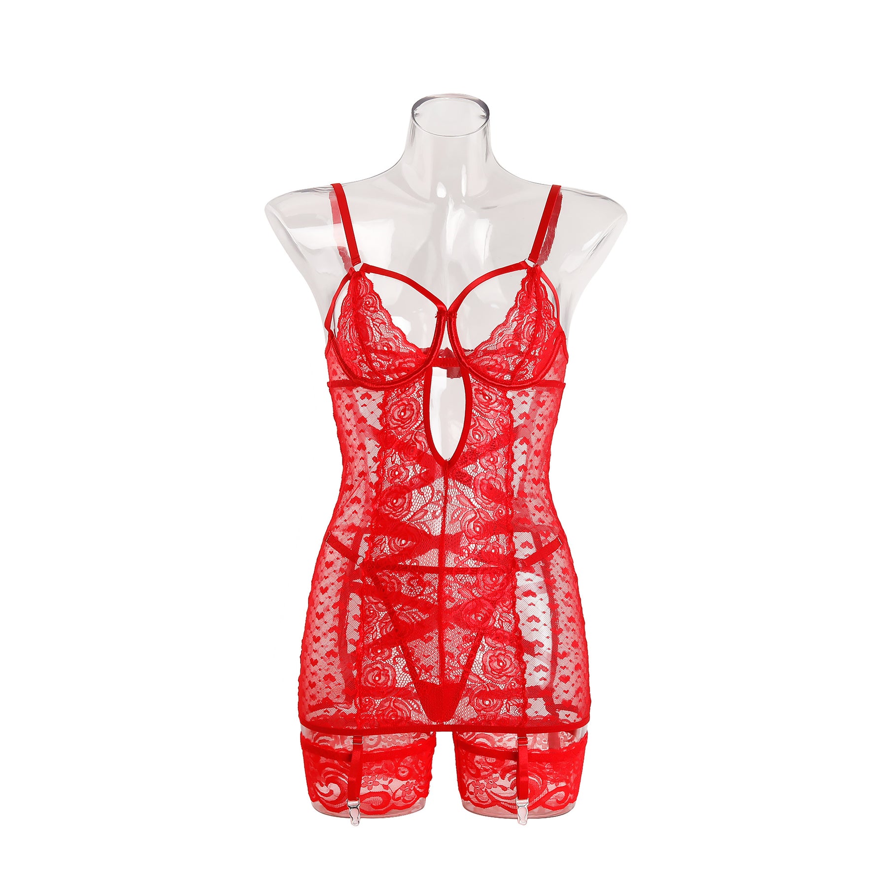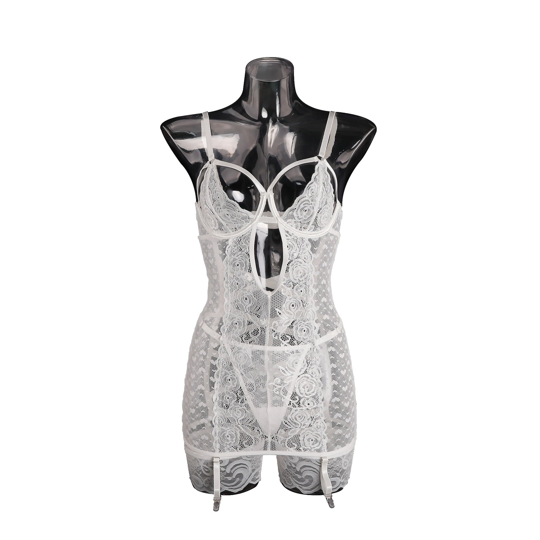 Lace Embroidered Sheer Garter Slip Set